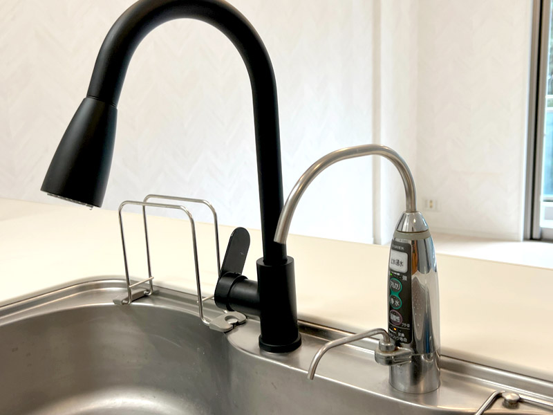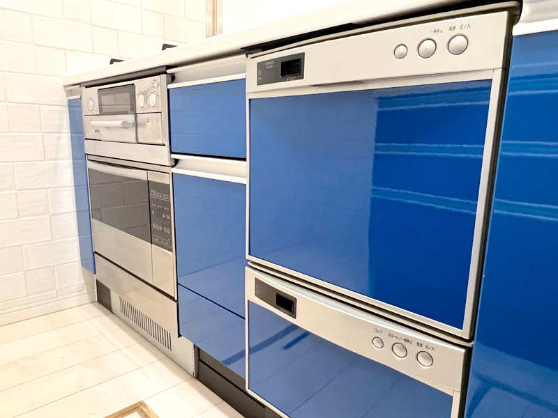 キッチン周りのタイルはイタリア製で、ビルトインオーブン等
