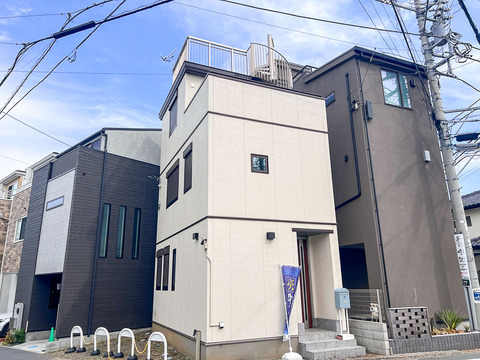 ~おすすめ物件~★湘南海岸まで徒歩7分(500m)★全9棟の開発分譲地・綺麗な街並★南西角地ため日当り・開放感良好★建物はお洒落なデザイナーズ住宅
