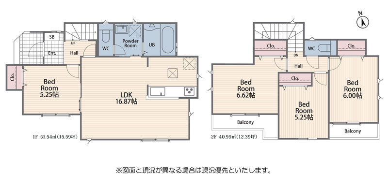 | 間取り詳細 | LDK16.8帖(1階) 洋室5.25帖(1階) 洋室6.62帖(2階) 洋室5.25帖(2階) 洋室6帖(2階) |