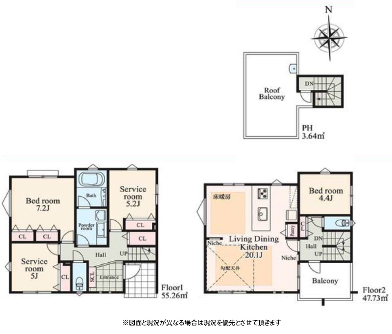 | 間取り詳細 | LDK20.1帖(2階) 洋室7.2帖(1階) 洋室4.4帖(2階) S5.2帖 (1階) S5帖 (1階) |