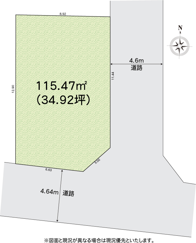 | 接道 | 不適合接道:無 角地 東側幅4.6m 南側幅4.6m |
