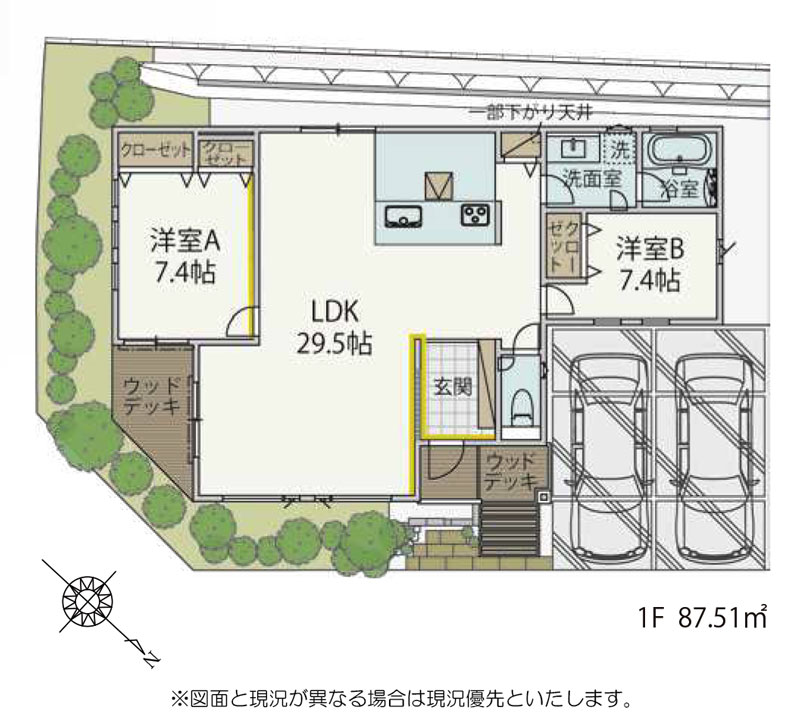 | 間取り詳細 | LDK29.5帖(1階) 洋室7.4帖×2(1階) |