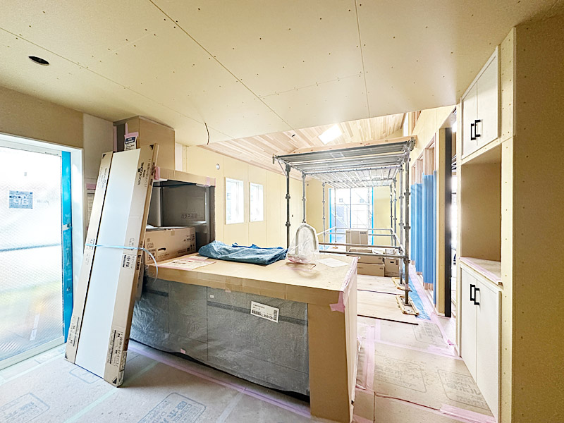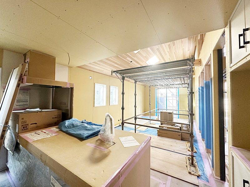 ◇ 勾配天井が生み出す開放感あふれる約20帖のLDK。