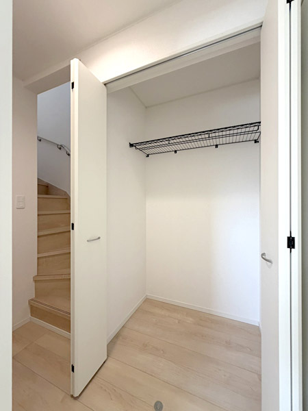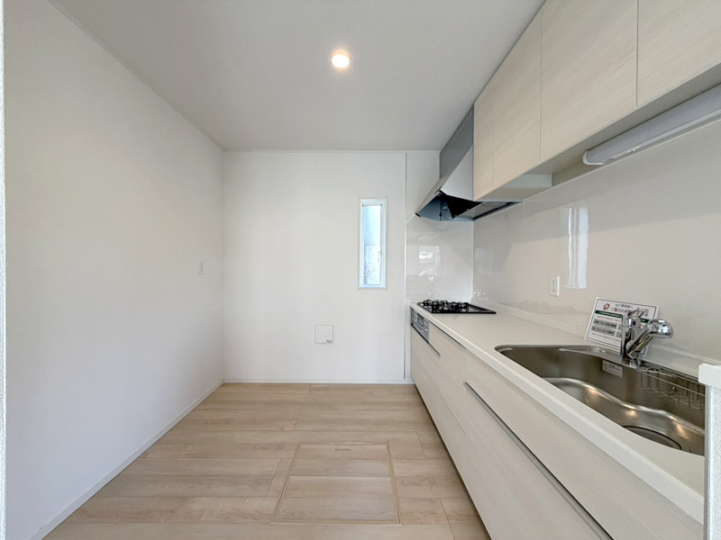 1階には17.5帖のゆとりあるLDKを配置 。対面式のシステムキッチンからはリビング全体が見渡せ、お料理中もご家族との会話が弾みます 。また、2.5帖のサービスルーム(納戸)や各所のクローゼットなど、収納スペースも豊富に確保されています 。