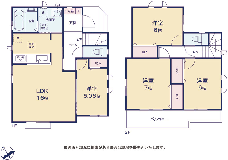 | 間取り詳細 | LDK16帖(1階) 洋室5.06帖(1階) 洋室7帖(2階) 洋室6帖×2(2階) |