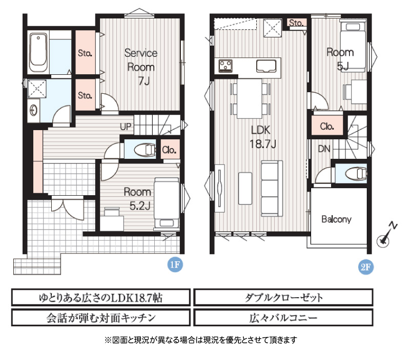 | 間取り詳細 | LDK18.7帖(2階) 洋室5.2帖(1階) 洋室5帖(2階) S7帖 (1階) |