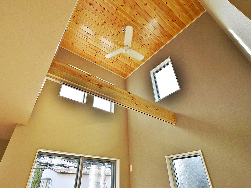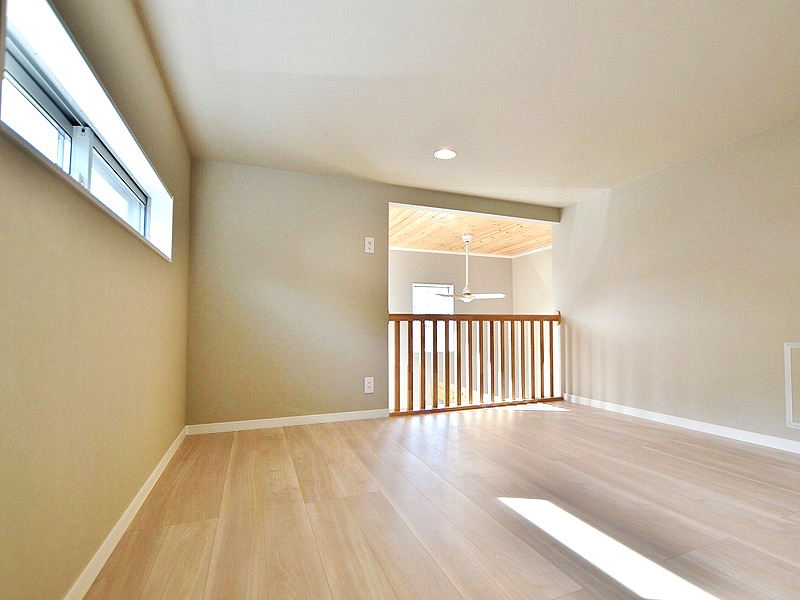 陽当たりの良い物件です。間取りは固定階段の小屋裏収納がついた3部屋付きの使い勝手の良い間取りです。2階リビングには吹抜けを採用し明るいリビングになります。