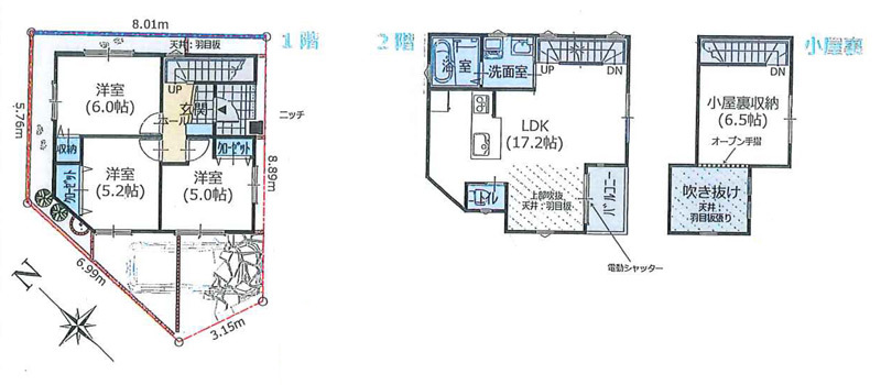 | 間取り詳細 | LDK17.2帖(2階) 洋室6帖(1階) 洋室5.2帖(1階) 洋室5帖(1階) | ||