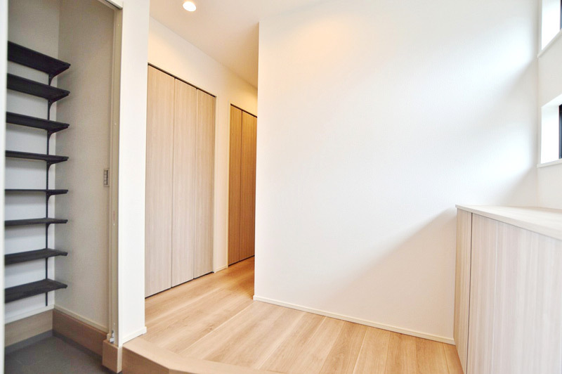 スカイバルコニーが特徴のお洒落な新築一戸建です♪大型開発分譲地の中です。間取りは4LDKの使い勝手の良い間取りです。玄関にはシューズクローク採用!リビングには吹抜けを採用し明るいリビングになります♪