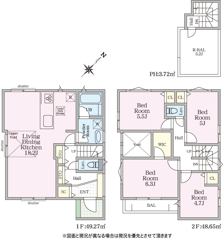 | 間取り詳細 | LDK18.5帖(1階) 洋室4.7帖(2階) 洋室5帖(2階) 洋室5.5帖(2階) 洋室6.3帖(2階) | ||