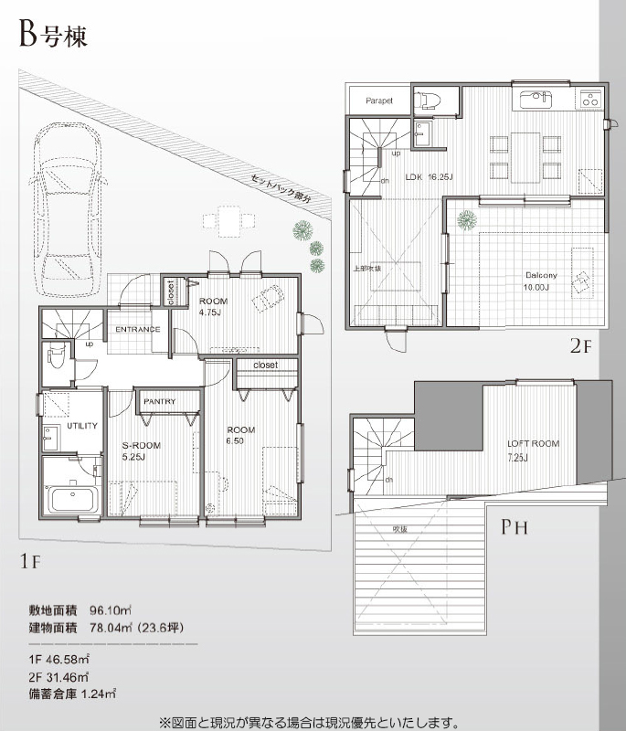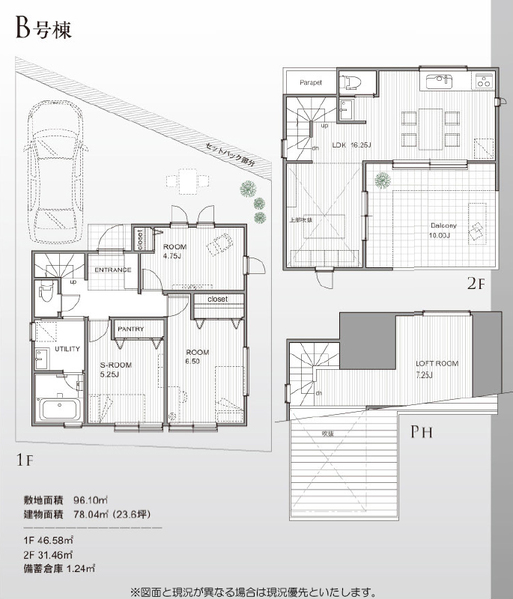 | 敷地面積 | 96.1m²(29.07坪) | 建物面積 | 78.04m²(23.6坪) |