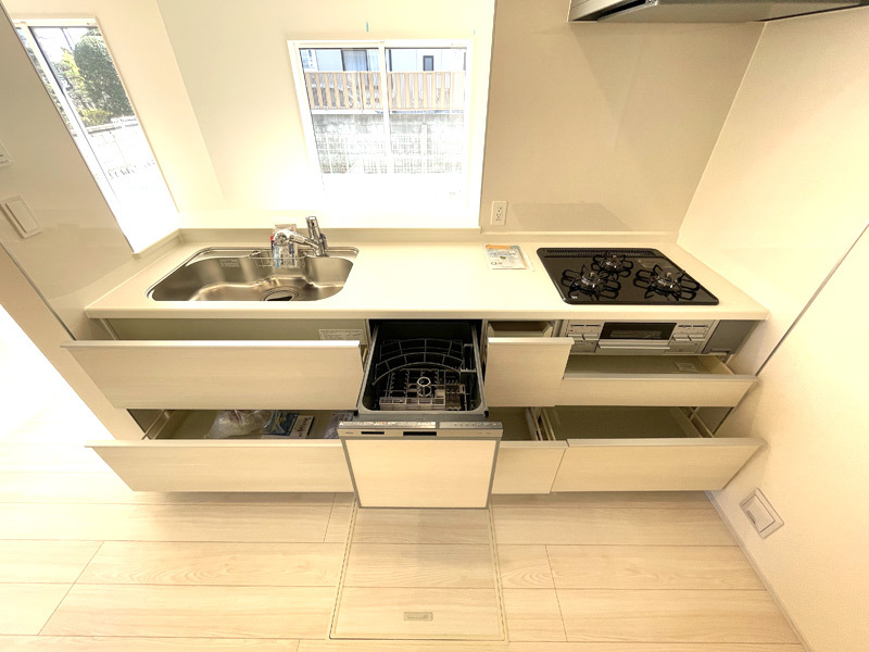 | 設備・仕様 | 都市ガス/東京電力/公営水道/下水排水/インターホンTV/システムキッチン/シャンプードレッサー/バルコニー/対面キッチン/追焚給湯/温水洗浄便座/浴室換気乾燥機/床下収納/クローゼット/ペアガラス/LED照明/エコ給湯/長期優良/トイレ2ヶ所/吹抜 |