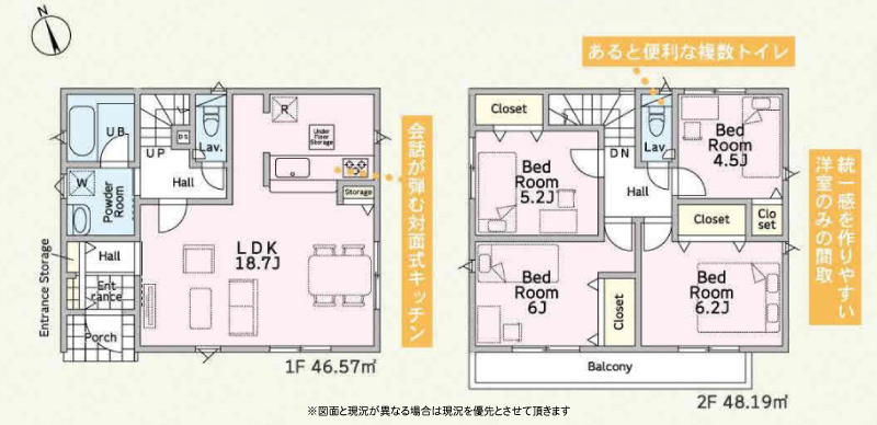 | 間取り詳細 | LDK18.7帖(1階) 洋室4.5帖(2階) 洋室5.2帖(2階) 洋室6帖(2階) 洋室6.2帖(2階) |