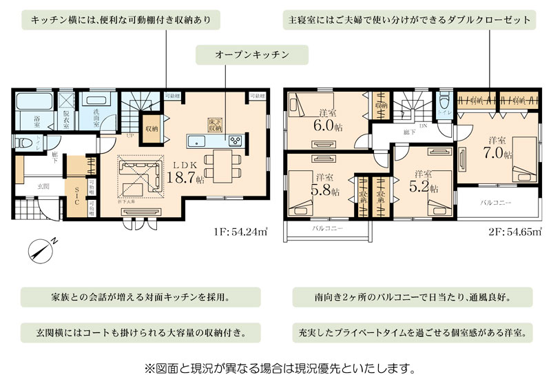 | 間取り詳細 | LDK18.7帖(1階) 洋室7帖(2階) 洋室6帖(2階) 洋室5.8帖(2階) 洋室5.2帖(2階) | ||