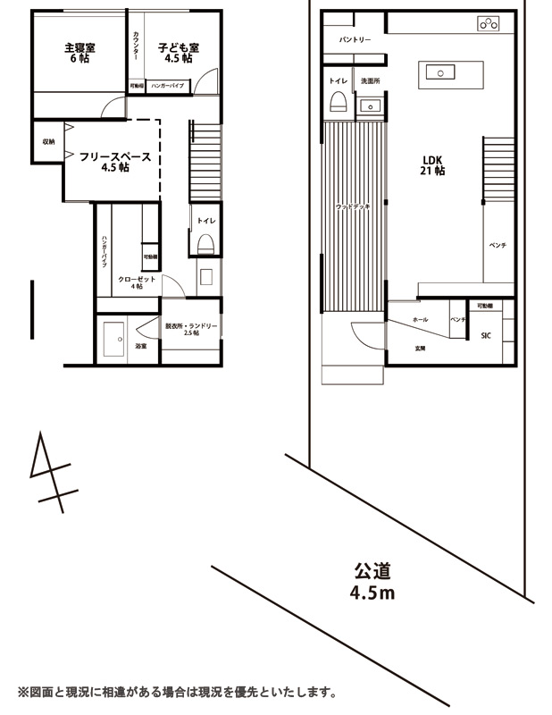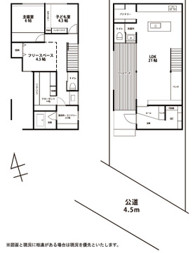 | 間取り詳細 | LDK21帖(1階) 洋室6帖(2階) 洋室4.5帖(2階) S4.5帖 (1階) |