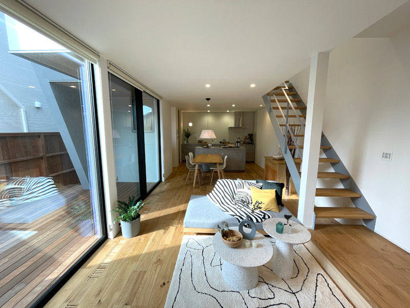 建築家プロデュースのモデルハウス分譲/駅まで徒歩7分/20帖を越えるLDK/カースペース2台/大開口サッシの窓