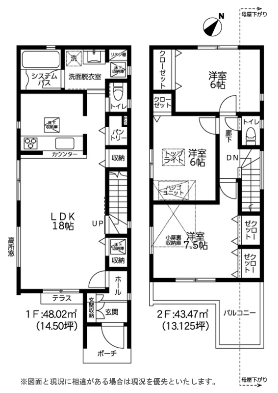 | 間取り詳細 | LDK18帖(1階) 洋室7.5帖(2階) 洋室6帖×2(2階) | ||
