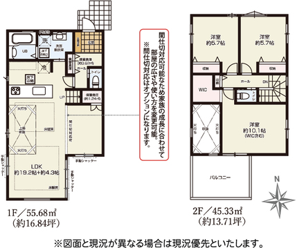 | 間取り詳細 | LDK23.5帖(1階) 洋室5.7帖×2(2階) 洋室10.1帖(2階) |