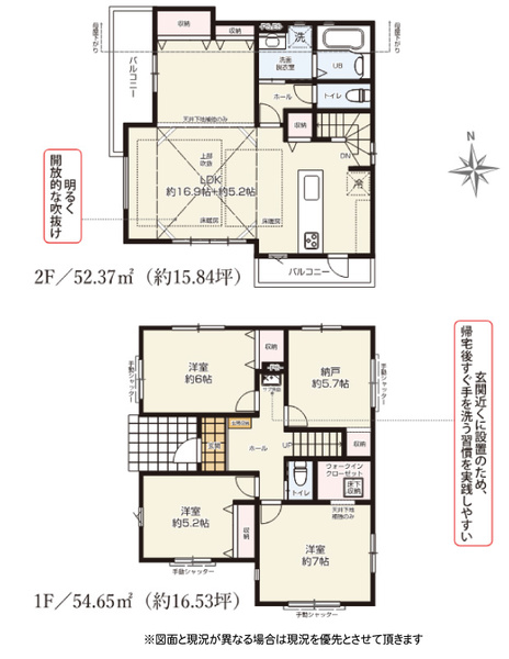 | 間取り詳細 | LDK22.1帖(2階) 洋室5.2帖(1階) 洋室6帖(1階) 洋室7帖(1階) S5.7帖 (1階) |