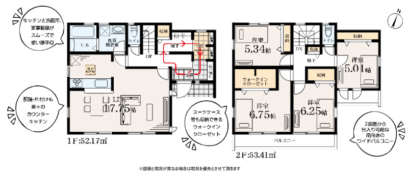 | 間取り詳細 | LDK17.7帖(1階) 洋室5.01帖(2階) 洋室5.34帖(2階) 洋室6.25帖(2階) 洋室6.75帖(2階) |