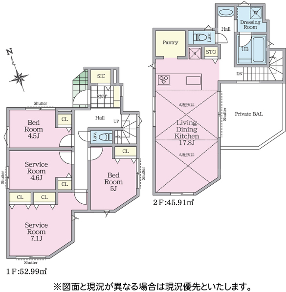 | 間取り詳細 | LDK17.8帖(2階) 洋室5帖(1階) 洋室4.5帖(1階) S4.6帖 (1階) S7.1帖 (1階) |