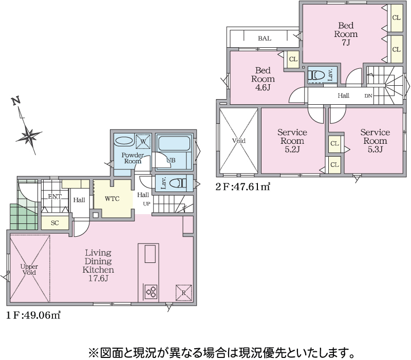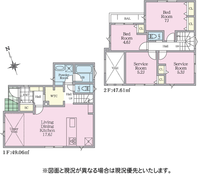 | 間取り詳細 | LDK17.6帖(1階) 洋室7帖(2階) 洋室4.6帖(2階) S5.2帖 (2階) S5.3帖 (2階) | ||