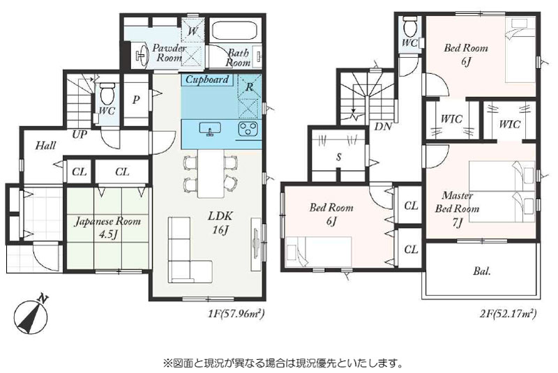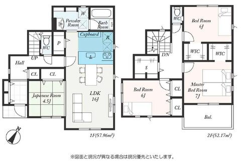 | 間取り詳細 | LDK16帖(1階) 和室4.5帖(1階) 洋室7帖(2階) 洋室6帖×2(2階) |
