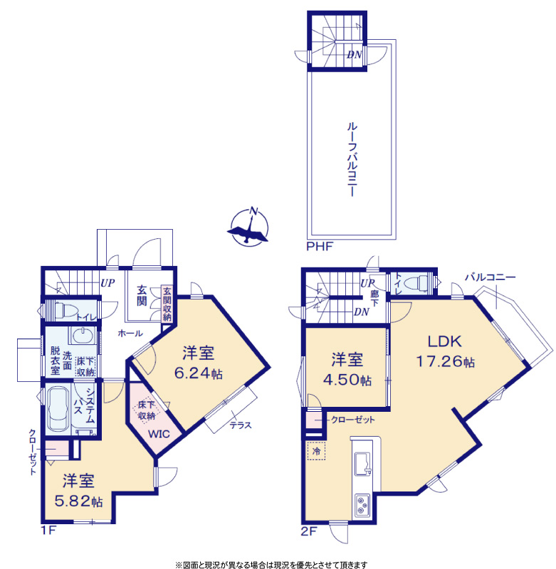 | 間取り詳細 | LDK17.2帖(2階) 洋室5.82帖(1階) 洋室6.24帖(1階) 洋室4.5帖(2階) |