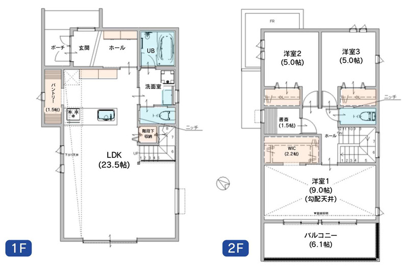| 間取り詳細 | LDK23.5帖(1階) 洋室9帖(2階) 洋室5帖×2(2階) |