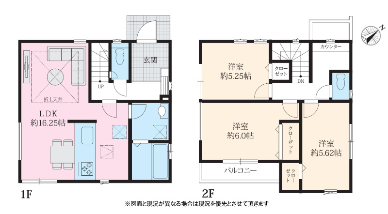 | 間取り詳細 | LDK16.2帖(1階) 洋室5.25帖(2階) 洋室5.62帖(2階) 洋室6帖(2階) |