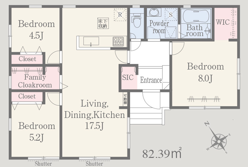 | 間取り詳細 | LDK17.5帖(1階) 洋室5.2帖(1階) 洋室4.5帖(1階) 洋室8帖(1階) |