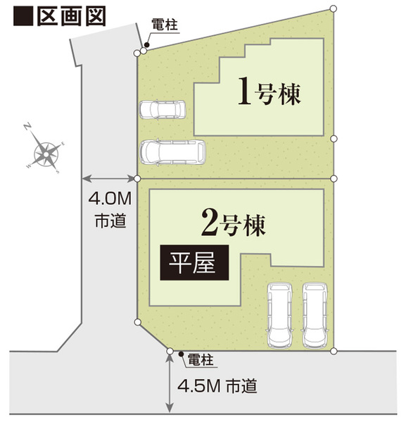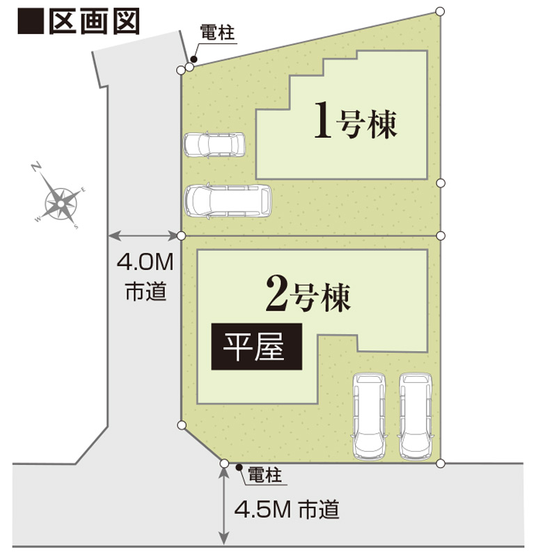 | 接道 | 不適合接道:無 角地 南西側幅4.5m 北西側幅4m |