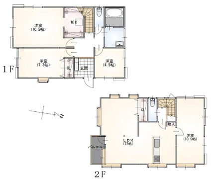 | 間取り詳細 | LDK22帖(2階) 洋室10.5帖(1階) 洋室7.3帖(1階) 洋室4.5帖(1階) 洋室10.5帖(2階) |