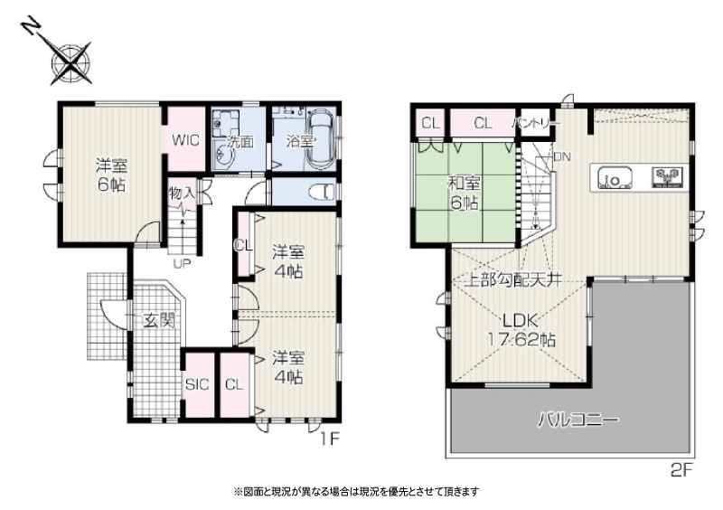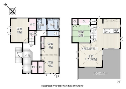 | 間取り詳細 | LDK17.6帖(2階) 和室6帖(2階) 洋室6帖(1階) 洋室8帖(1階) |