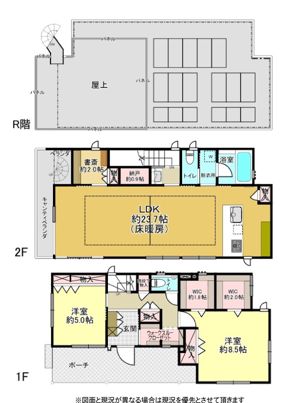 | 間取り詳細 | LDK23.7帖(2階) 洋室5帖(1階) 洋室8.5帖(1階) |