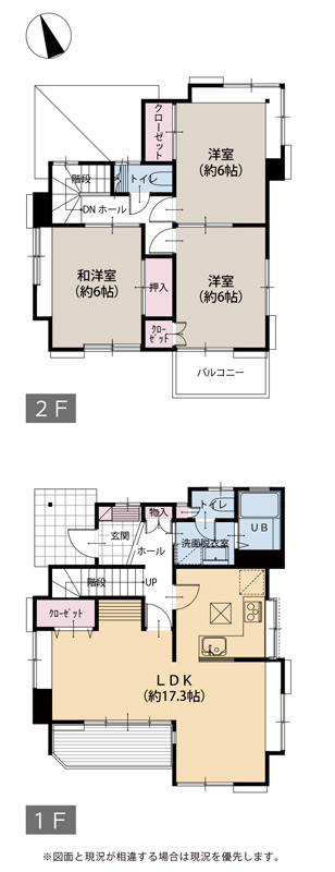 | 間取り詳細 | LDK17.3帖(1階) 洋室6帖×3(2階) |