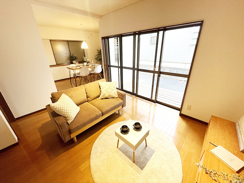新規リノベーション/庭に面した南向きリビング/17.3帖の広々リビング