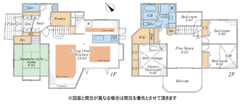 | 間取り詳細 | LDK25帖(1階) 和室8帖(1階) 洋室8帖(2階) 洋室6帖(2階) 洋室6帖(2階) S8帖 (2階) | ||