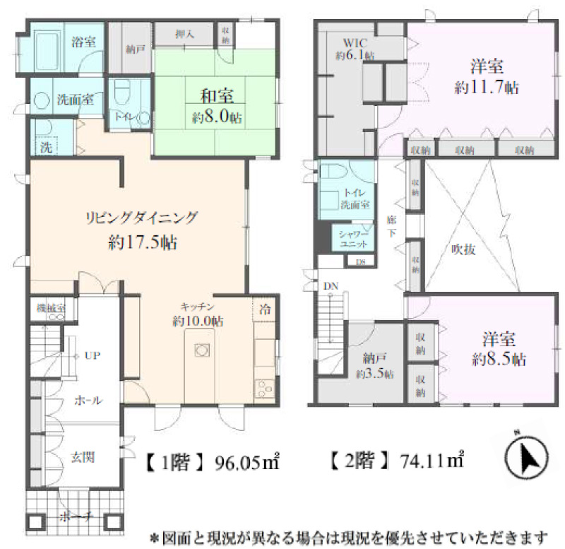 | 間取り詳細 | LDK27.5帖(1階) 和室8帖(1階) 洋室8.5帖(2階) 洋室11.7帖(2階) | ||