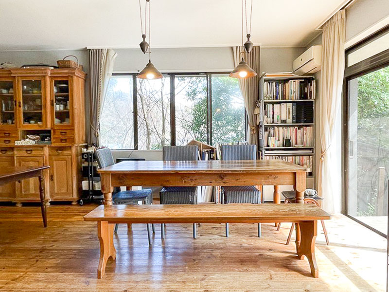 鎌倉大仏の裏手、約234坪の敷地を擁する木立の中に、約40坪の母屋と15坪の離れのある家です。