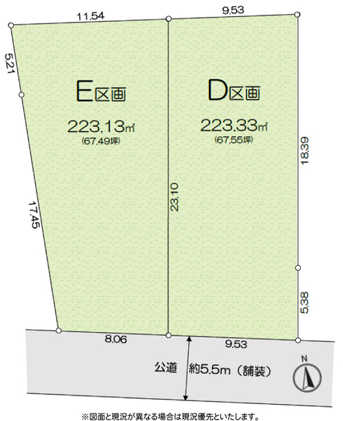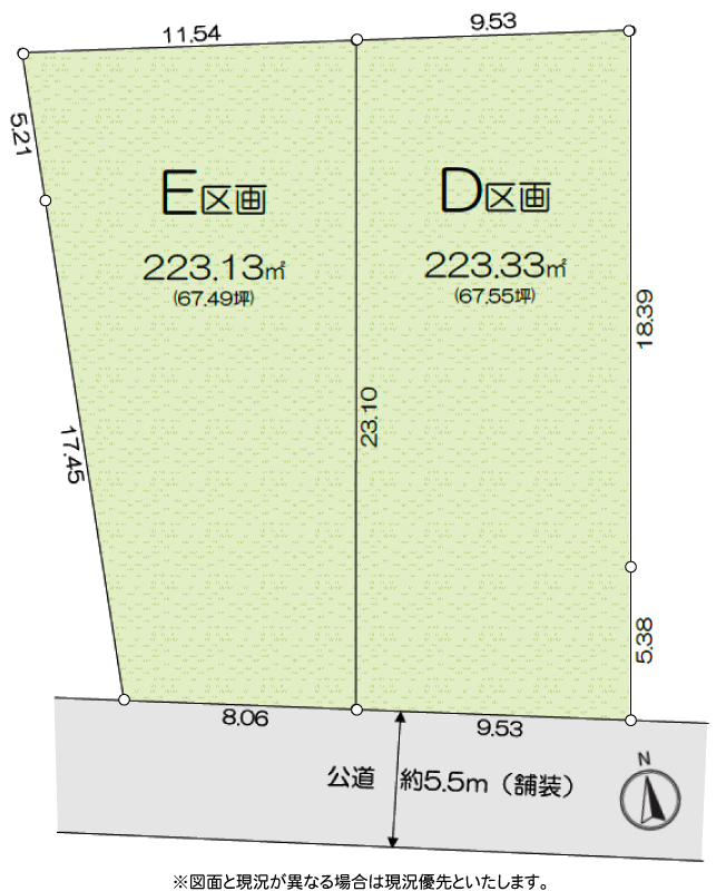 | 敷地面積 | 223.33m²(67.55坪) | 坪単価 | 125.3万円 |