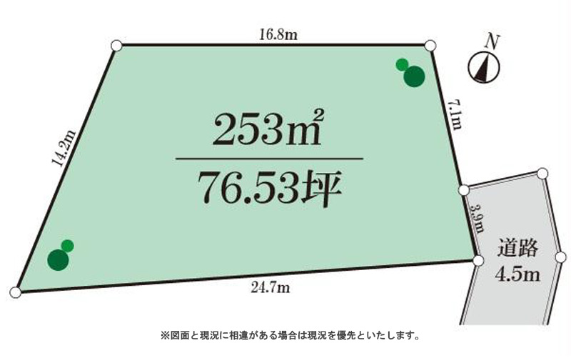 ★土地面積約76坪のゆとりある敷地で、広々とした住まいづくりが可能★