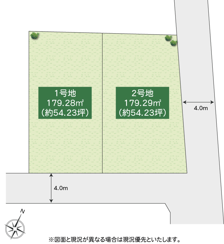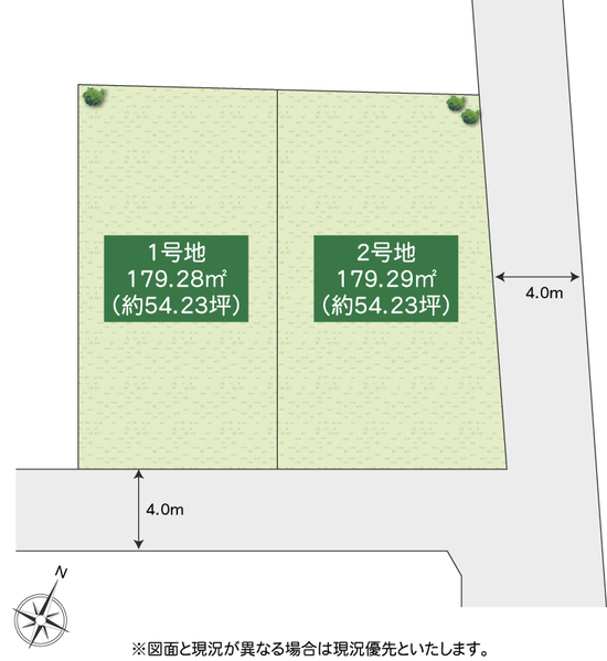 | 接道 | 不適合接道:無 角地 南西側幅4m 北東側幅4m |