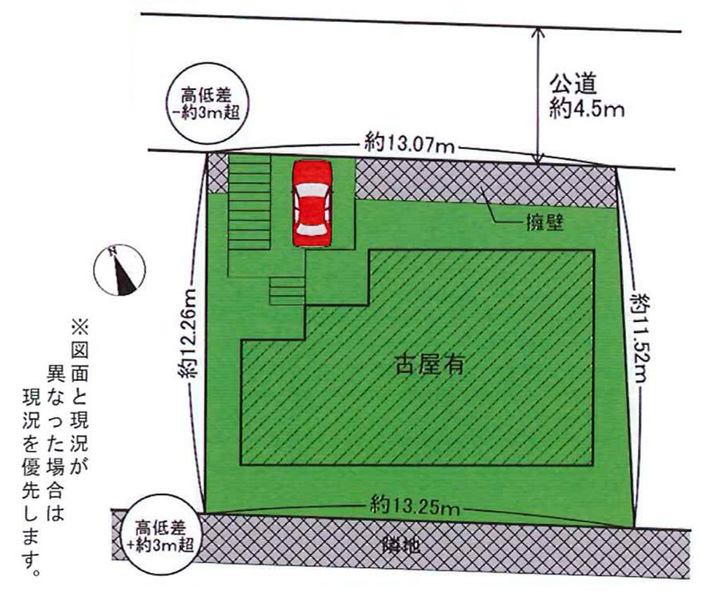 | 備考 | ※準防火地域 ※第1種高度地区 ※宅地造成等工事規制区域 ※ガケ条例 ※埋蔵文化財包蔵地(南西側敷地一部) ※景観法:一般住宅地 |