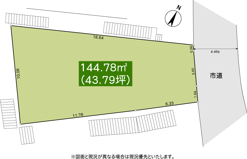| 敷地面積 | 144.78m²(43.79坪) | 坪単価 | 36万円 |