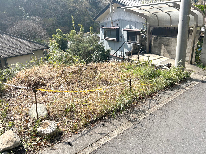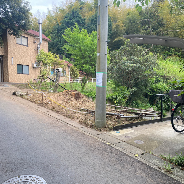 緑豊かな住環境の道路から少し下がった土地です。ロケーションを最大限に活かした魅力的な建物をご検討ください!