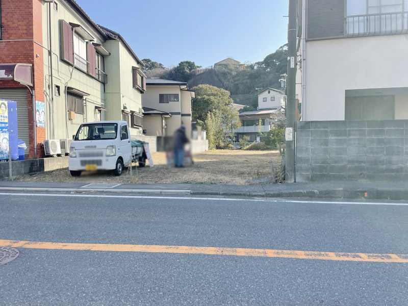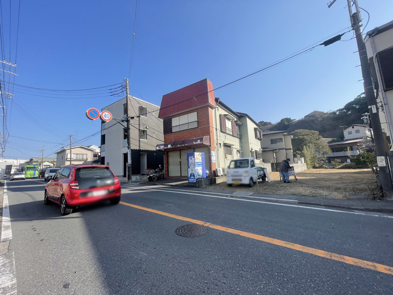 ~腰越4丁目~腰越海岸まで約400m 県道沿いの286.55㎡ある広々した敷地です