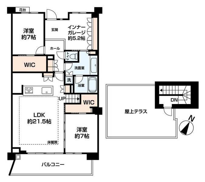 | 間取り詳細 | LDK21.5帖 洋室7帖×2 |
