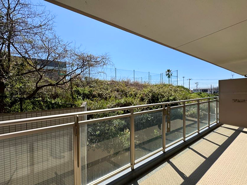 ・高い空と豊かな緑、目の前を走る江ノ電が楽しめる気持ちの良いバルコニーです。