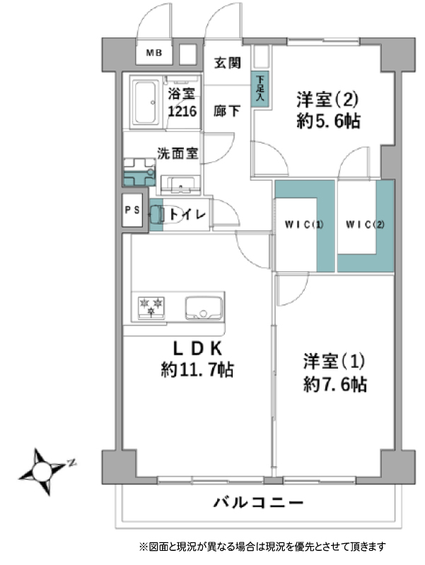 | 間取り詳細 | LDK11.7帖 洋室5.6帖 洋室7.6帖 |